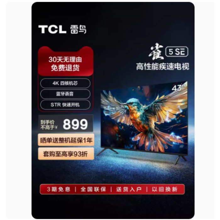 TCL 雷鸟雀4SE 32英寸高画质家庭防蓝光智能网络平板电视机43