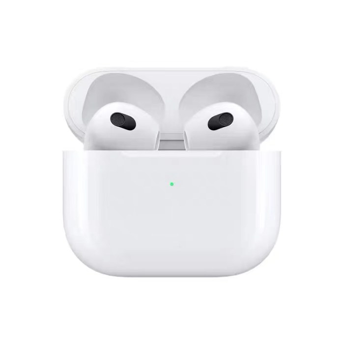 | 尺寸 | AirPods(每枚)18.26*19.21*30.79毫米;充电盒:46.4*21.38*54.4毫米 |